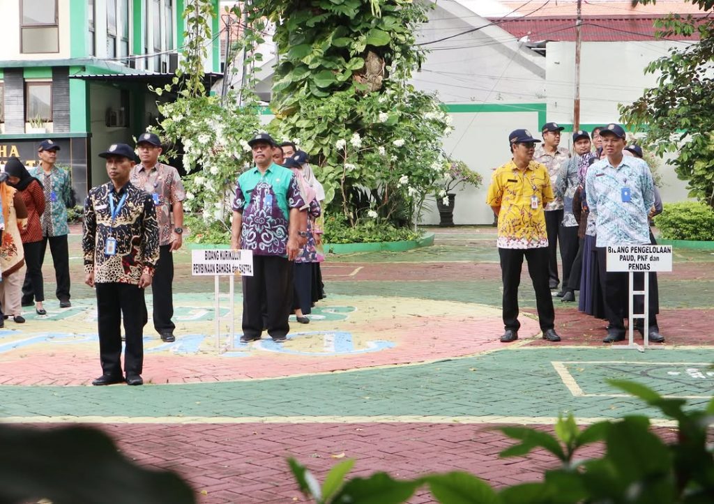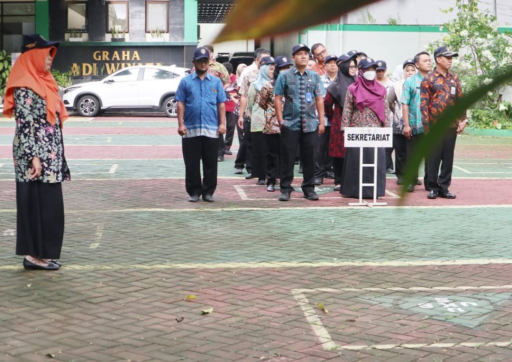 MADIUN – Sekretaris Dinas Pendidikan Kota Madiun Heni Wisma Rosanawati, S,Pd., MT memimpin Apel pagi, Kamis (30/1) di Halaman Kantor Dinas Pendidikan. Apel tersebut sekaligus melepas purna tugas Pengelolan Keuangan Subbag Umum Keuangan Suripto Ariyanto.