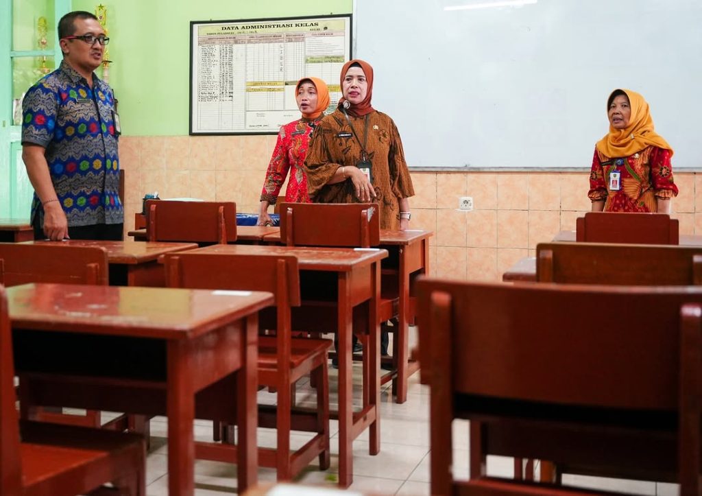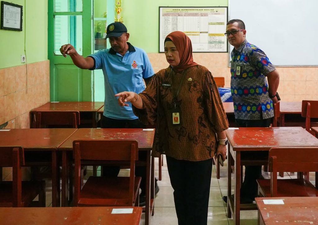 MADIUN – Dalam mempersiapan lokasi tes terstandar SPMB 2025, Kepala Dinas Pendidikan Kota Madiun Dr. Lismawati, S.Pd., M.Pd bersama tim melakukan kroscek ruang ujian yang bakal menjadi tempat penyelenggaraan tes terstandar SMPN 2025 mendatang, Kamis (22/5).