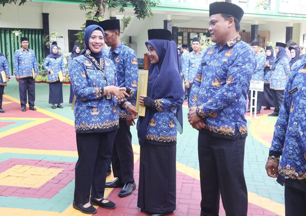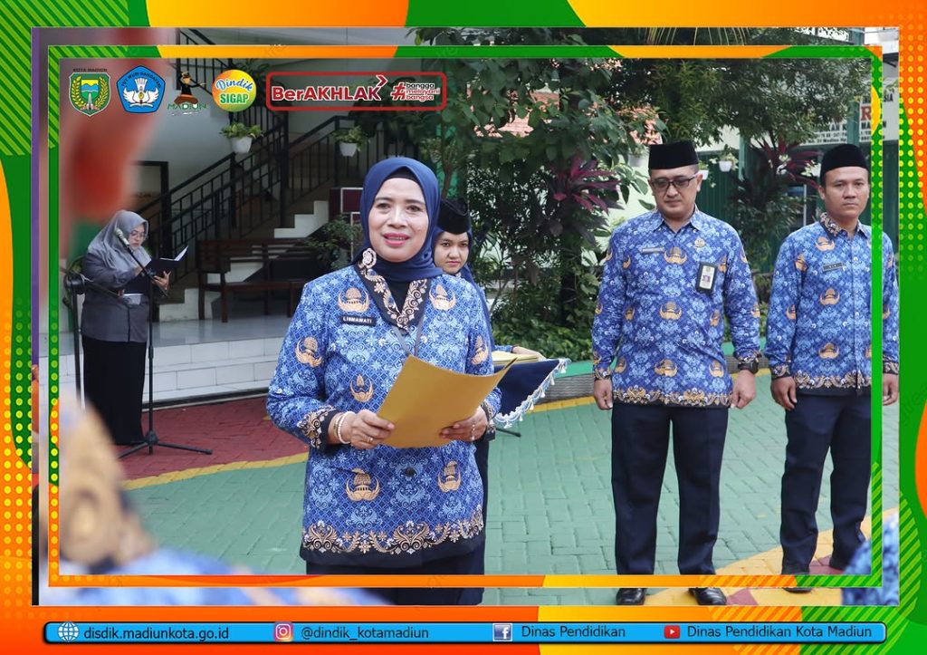 MADIUN – Dinas Pendidikan Kota Madiun menggelar apel pagi sekaligus penyerahan Surat Keputusan (SK) dan Surat Perintah Melaksanakan Tugas (SPMT) untuk PPPK Formasi Tahun 2024 oleh Kepala Dinas Pendidikan Kota Madiun Dr. Lismawati, S.Pd., M.Pd selaku Pembina apel dan diikuti seluruh pejabat dan pegawai di Halaman Kantor Dinas Pendidikan, Selasa (17/6).