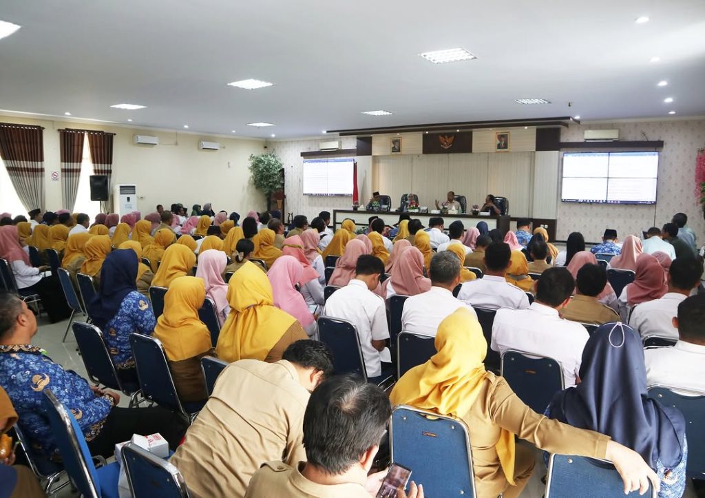 Terkait materi tes serta mekanismenya penyelenggaraan, Kepala Dinas Pendidikan Kota Madiun Dr. Lismawati, S.Pd,.M.Pd, mengundang seluruh tim data, penyusun naskah dan pengawas ujian untuk mengetahui tugas masing-masing dan tata tertib yang harus dilaksanakan bagi pengawas ujian ataupun calon peserta didik yang akan mengikuti ujian di Gedung Adiwiyata Barat, Selasa (20/5).