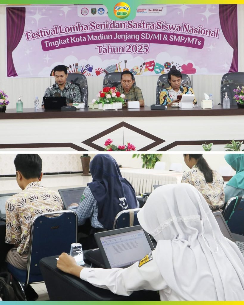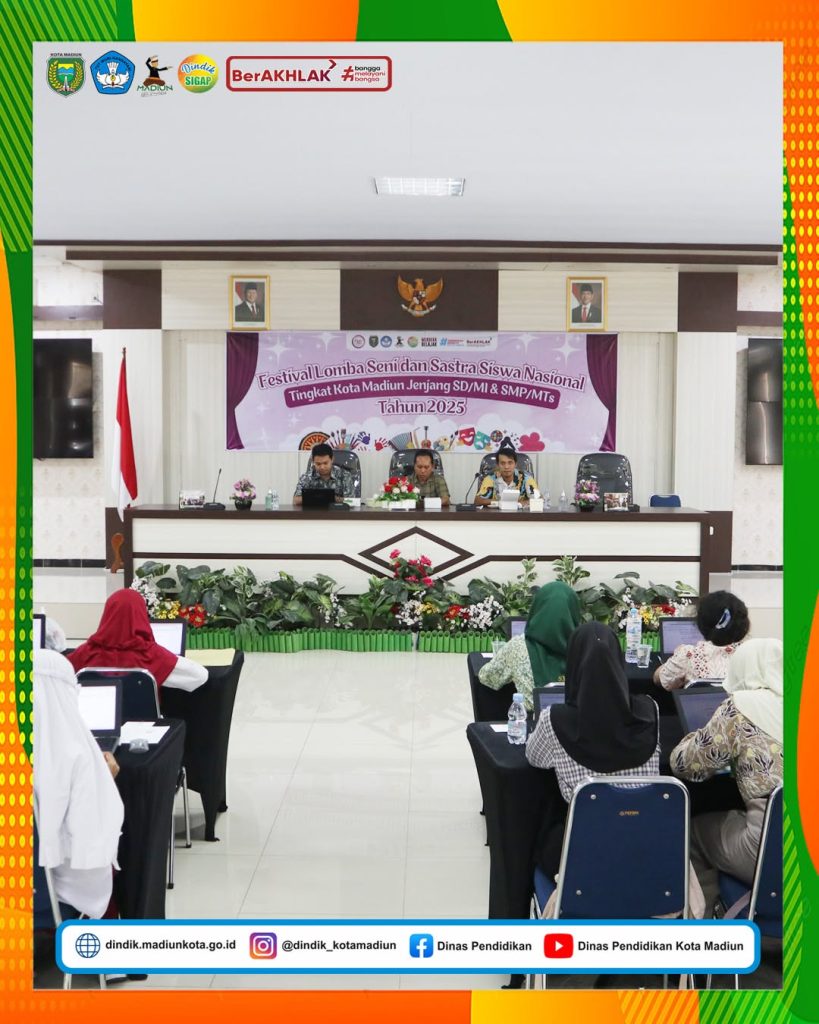 Pelaksanaan FLS3N Kota Madiun 2025 merupakan ajang bergensi bagi peserta didik untuk mengekresikan, menyalurkan dan mengembangkan bakat kreativitas di bidang seni dan sastra. FLS3N tahun ini terdapat 10 cabang perlombaan, diantaranya menyanyi solo SD/SMP, gambar ekspresi SD, seni kriya SD, gambar ilustrasi SMP, menulis cerita SD/SMP, pantomin SD/SMP, kreativitas music tradisional SMP, ansambel music SMP dan tari SD/SMP.