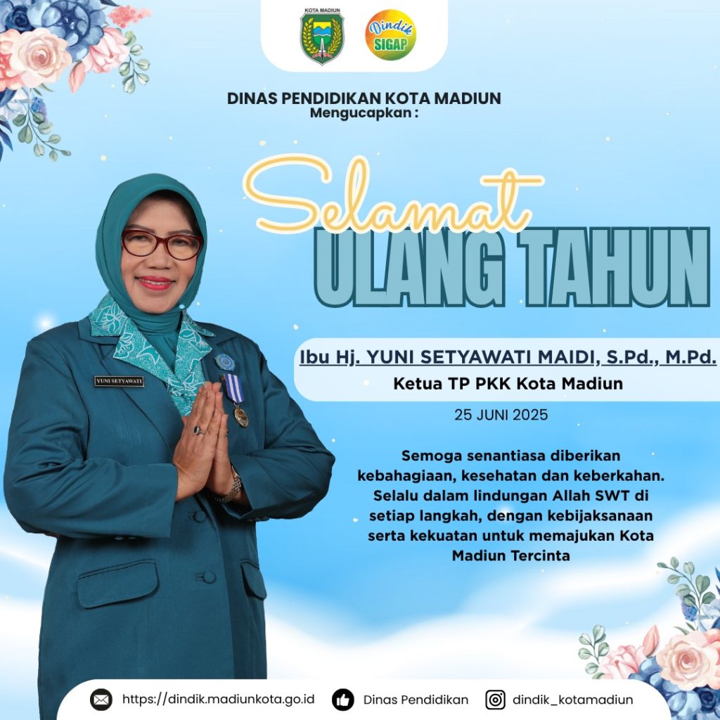 Kepala Dinas Pendidikan Kota Madiun Dr. Lismawati, S.Pd., M.Pd beserta jajaran mengucapkan :