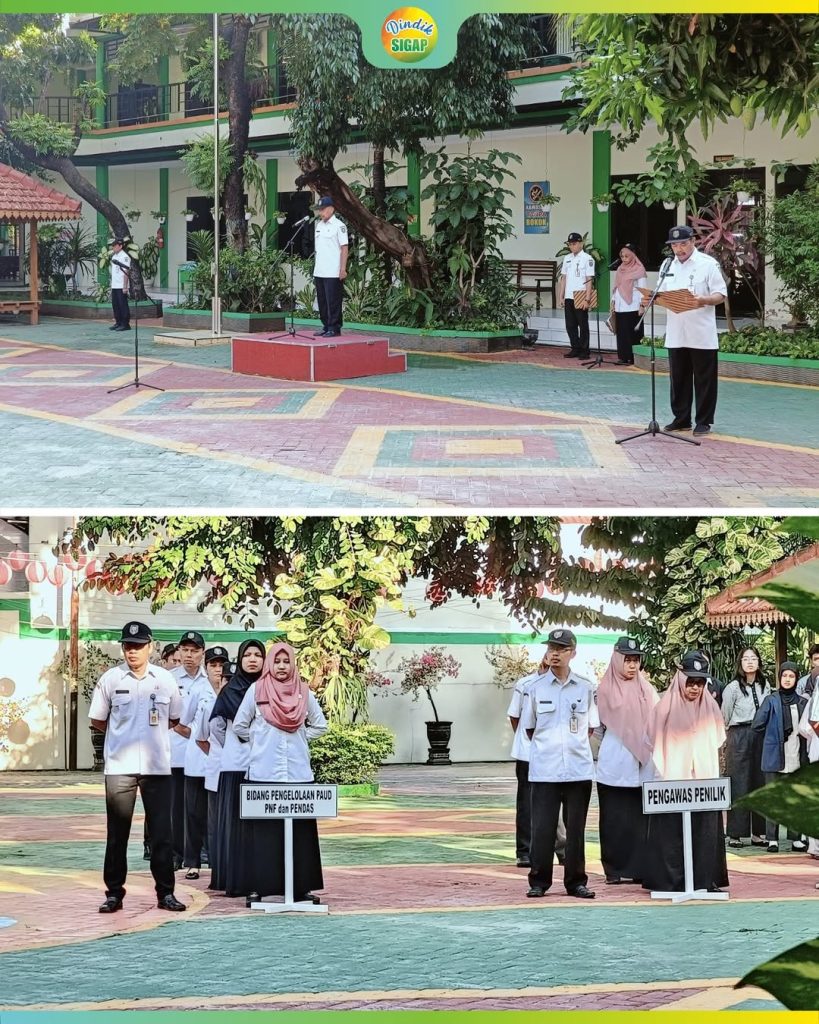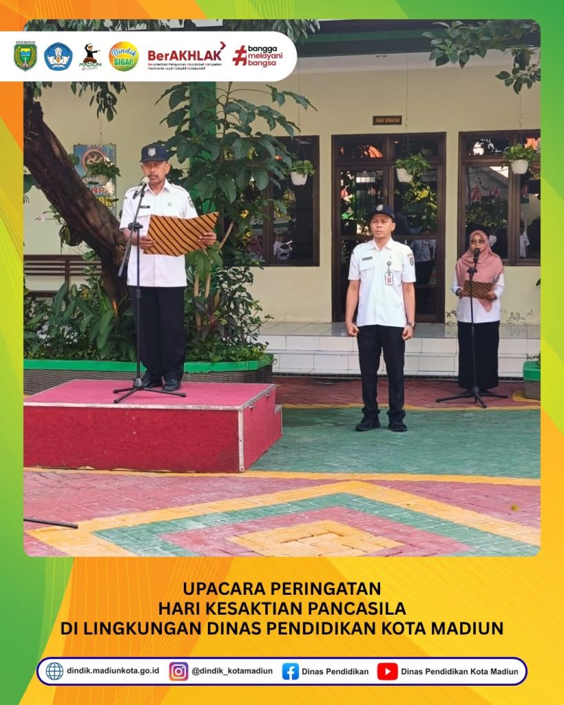 MADIUN – Pagi ini seluruh instansi pemerintah termasuk Dinas Pendidikan Kota Madiun melaksanakan upacara dalam rangka memperingati Hari Kesaktian Pancasila dengan mengusung tema “Pancasila Perekat Bangsa Menuju Indonesia Raya” yang jatuh pada hari Rabu (1/10/2025). Upacara di laksanakan di halaman kantor Dindik Kota Madiun dengan diikuti seluruh pegawai, mahasiswa magang dan PKL.