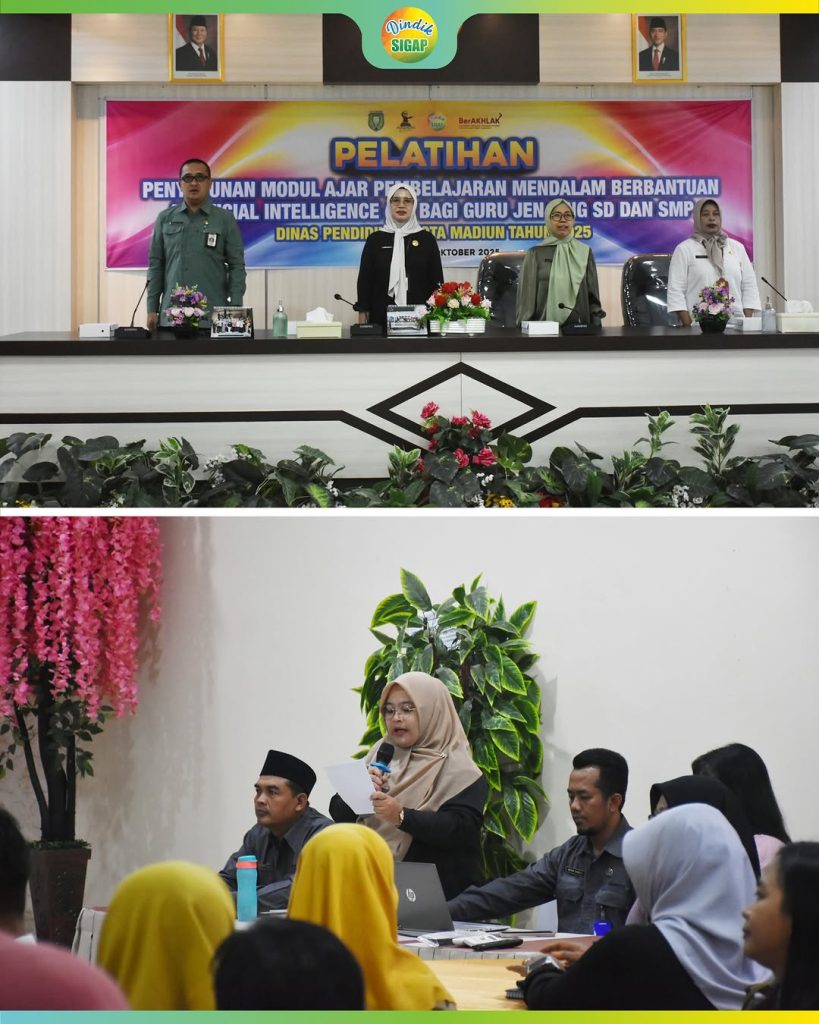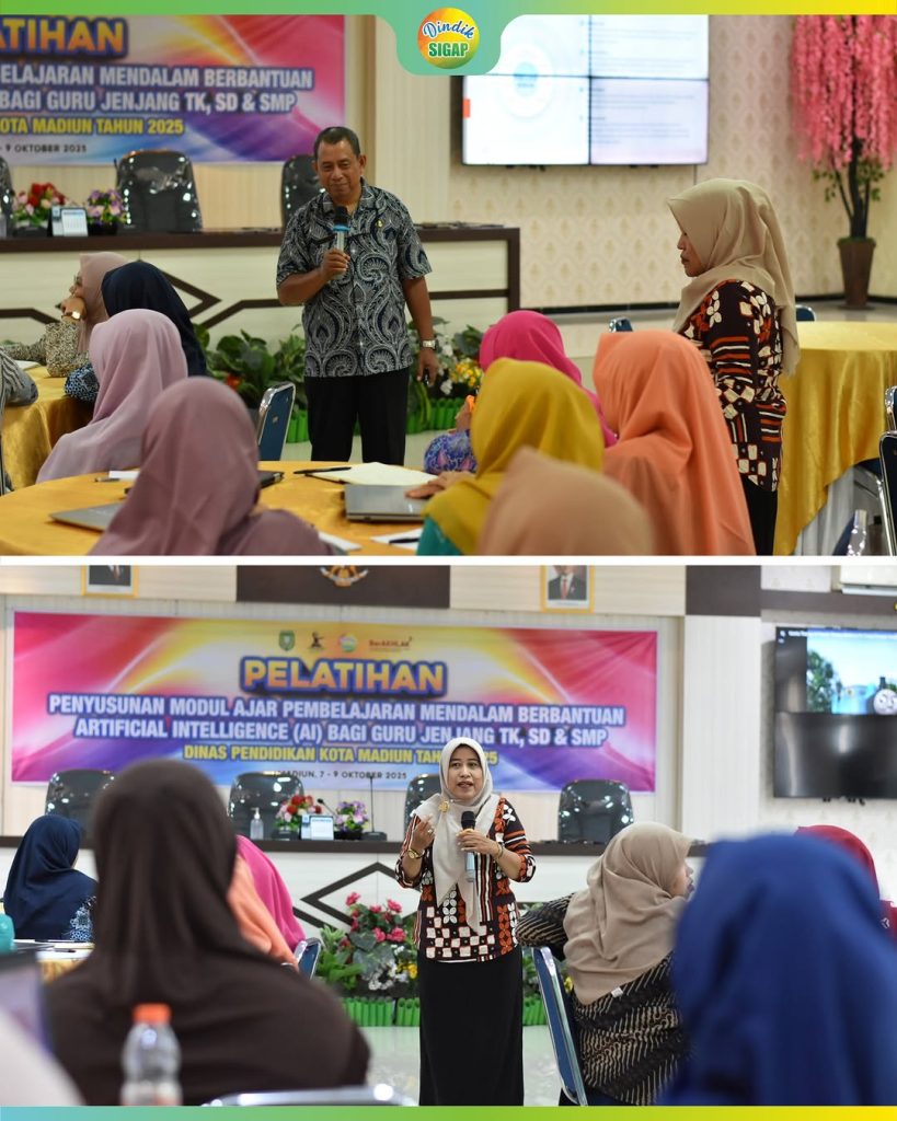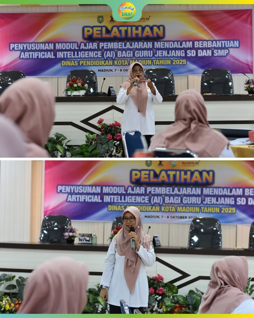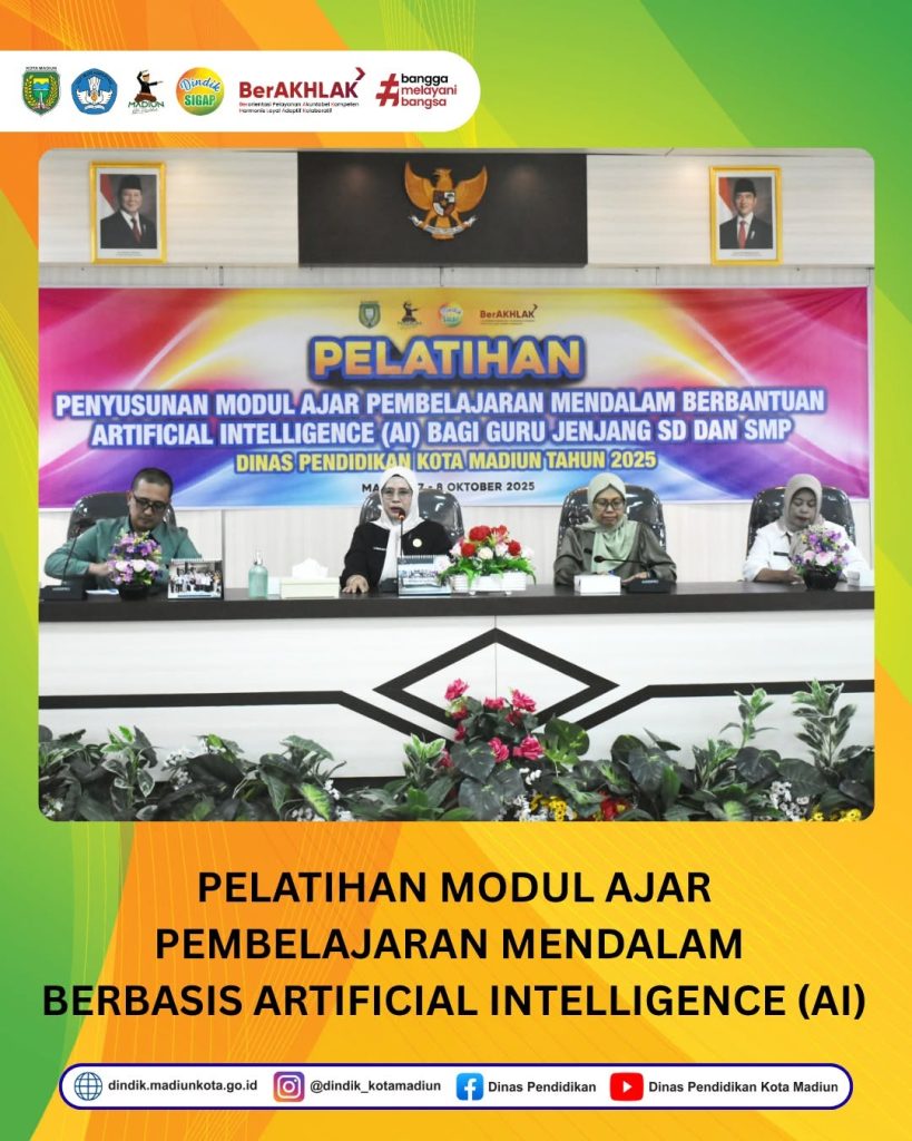 MADIUN – Pelatihan modul ajar pembelajaran mendalam berbasis Artificial Intelligence (AI) yang di selenggarakan Dinas Pendidikan Kota Madiun merupakan salah satu elemen penting dalam proses pendidikan di Kota Madiun. Dalam era digital saat ini, penggunaan teknologi seperti kecerdasan buatan (AI) menawarkan peluang besar untuk meningkatkan kualitas modul pembelajaran.
