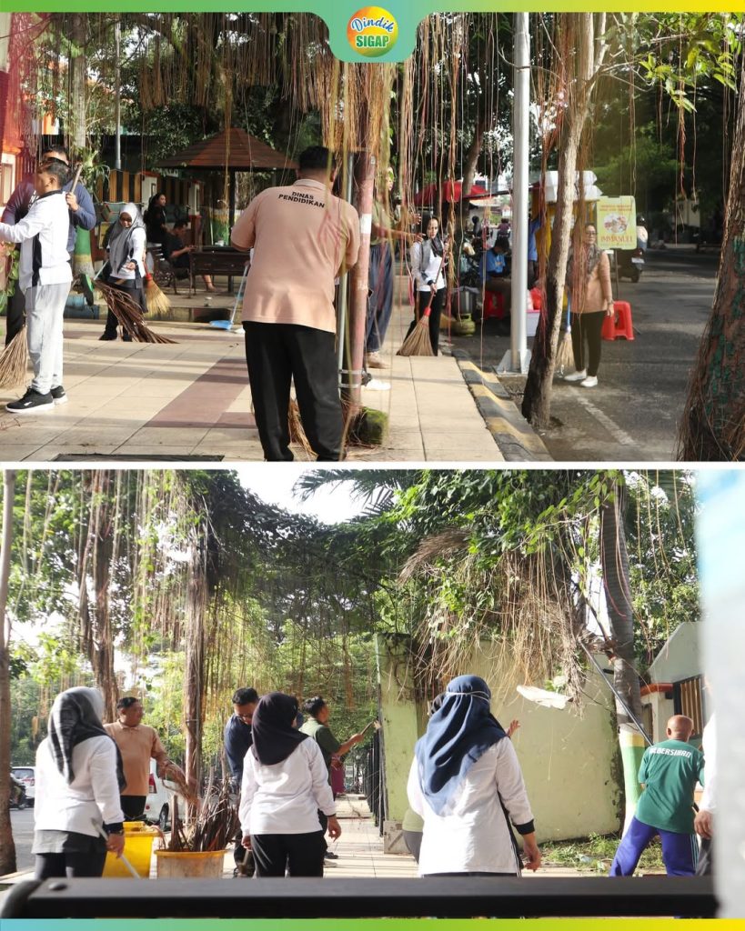 Pagi itu, udara masih terasa sejuk ketika para pegawai Dinas Pendidikan mulai berdatangan ke halaman kantor. Matahari baru saja muncul, memberikan cahaya keemasan yang lembut di antara pepohonan. Dengan mengenakan pakaian olahraga dan membawa peralatan kebersihan masing-masing, seluruh pegawai tampak bersemangat mengikuti kegiatan kerja bakti yang telah dijadwalkan.