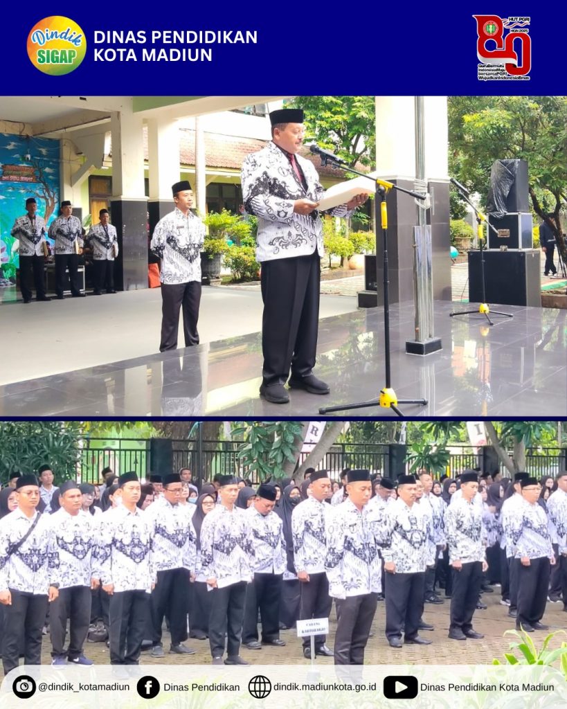 Sejak pagi, para guru, kepala sekolah, dan tenaga kependidikan dari berbagai satuan pendidikan hadir dengan penuh kesiapan. Barisan apel tertata rapi, mencerminkan disiplin sekaligus kekompakan para insan pendidikan Kota Madiun dalam memperingati momen penting organisasi profesi terbesar di Indonesia ini.